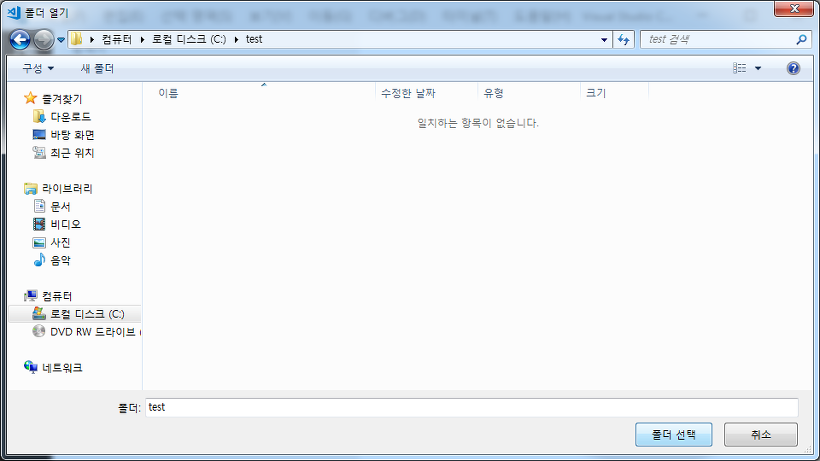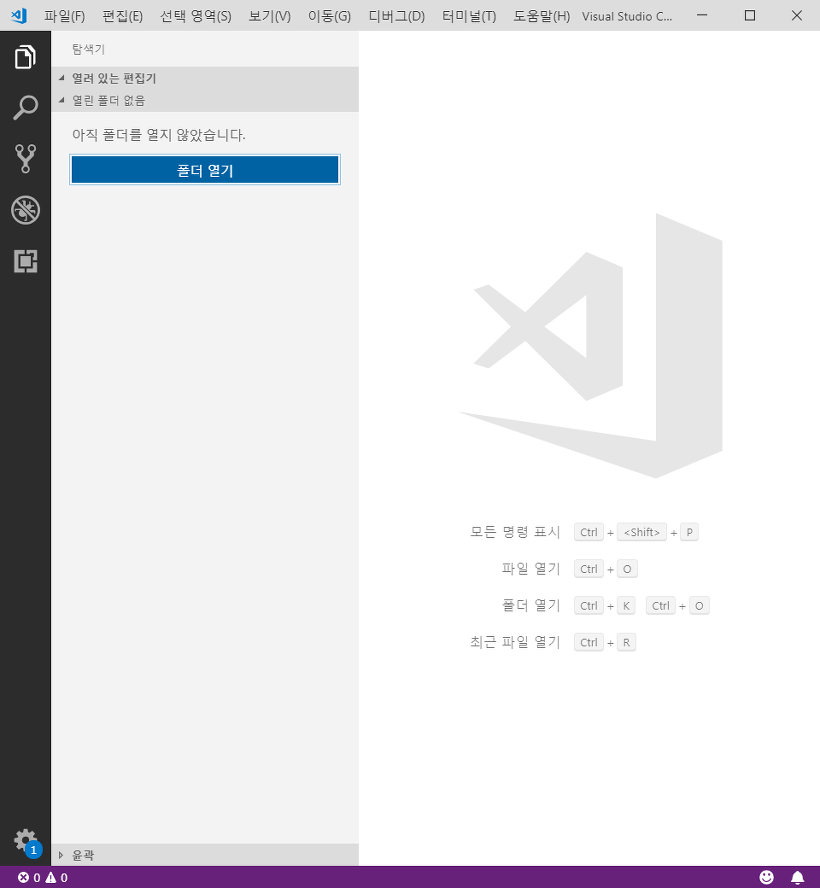 - 탐색기에서 폴더 열기를 클릭하여 열 폴더를 지정한다.