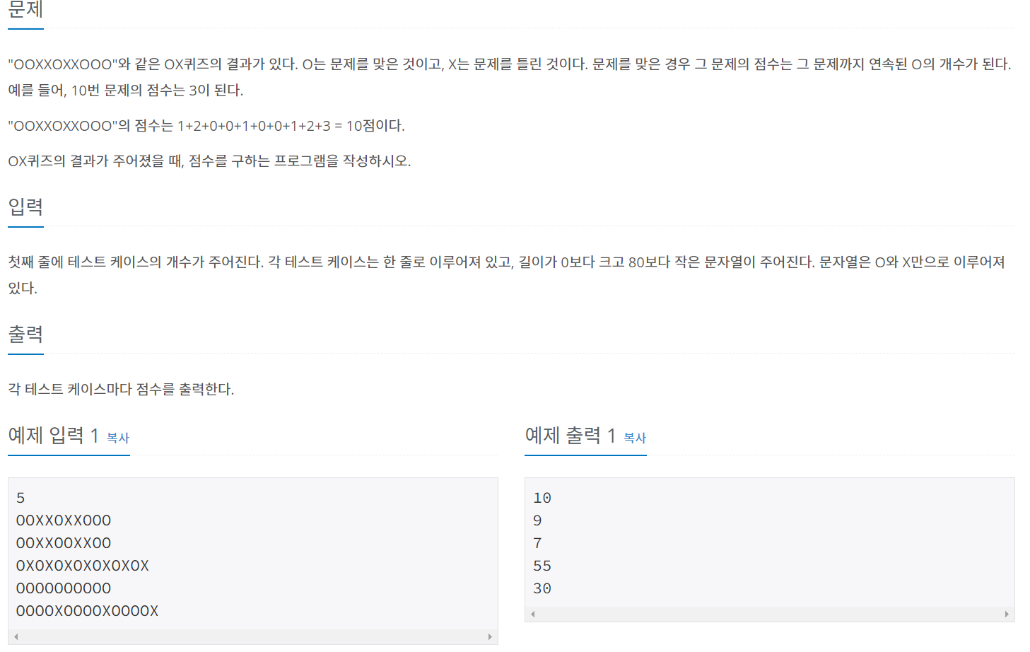 score += 1 # O인데 연속이 아닐경우 1점