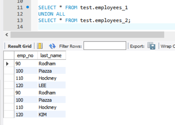 employee_1 테이블과 employee_2 테이블 UNION 결과값