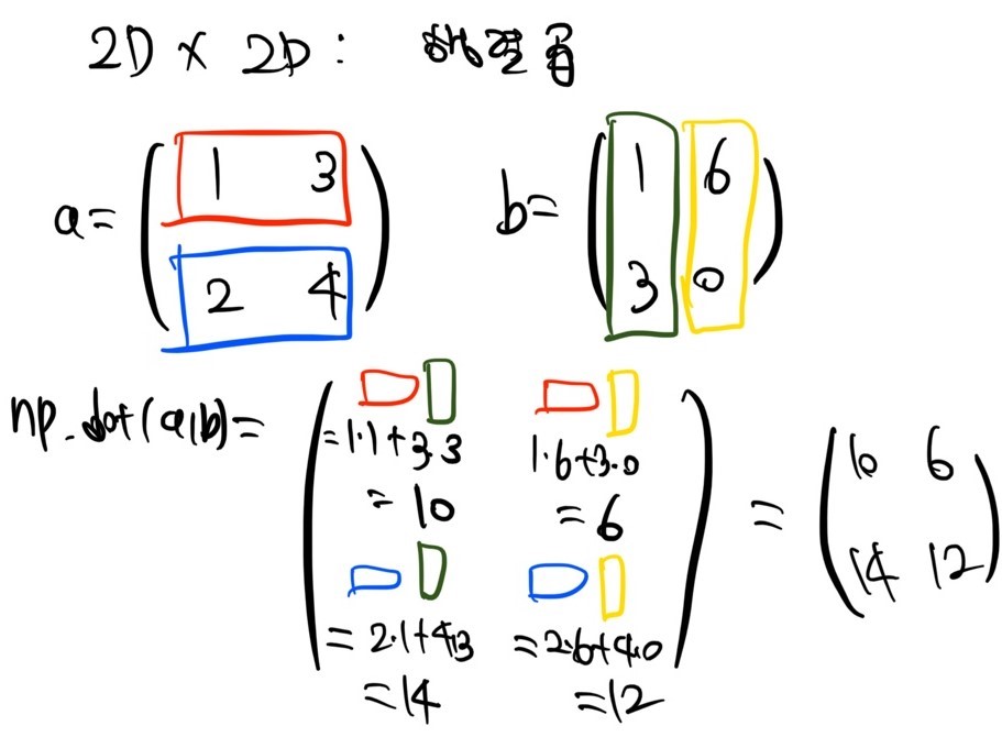 쉽게 설명하면 왼쪽 array의 각 행, 오른쪽 array의 각 열끼리